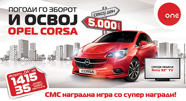 Со ОНЕ до OPEL Corsa: Нова СМС наградна игра на ОНЕ