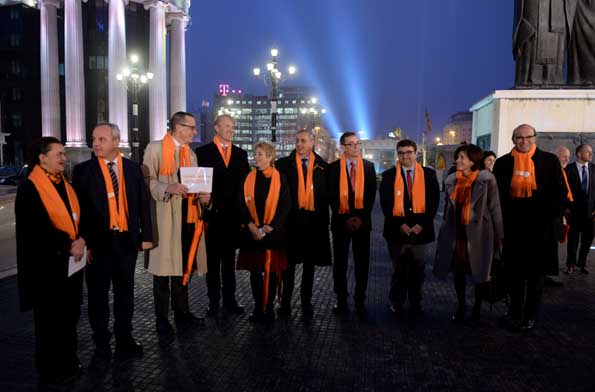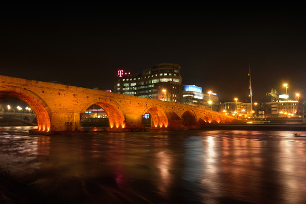 „Стави точка“ – Камениот Мост засвети во портокалово во поддршка на кампањата против насилството врз жените