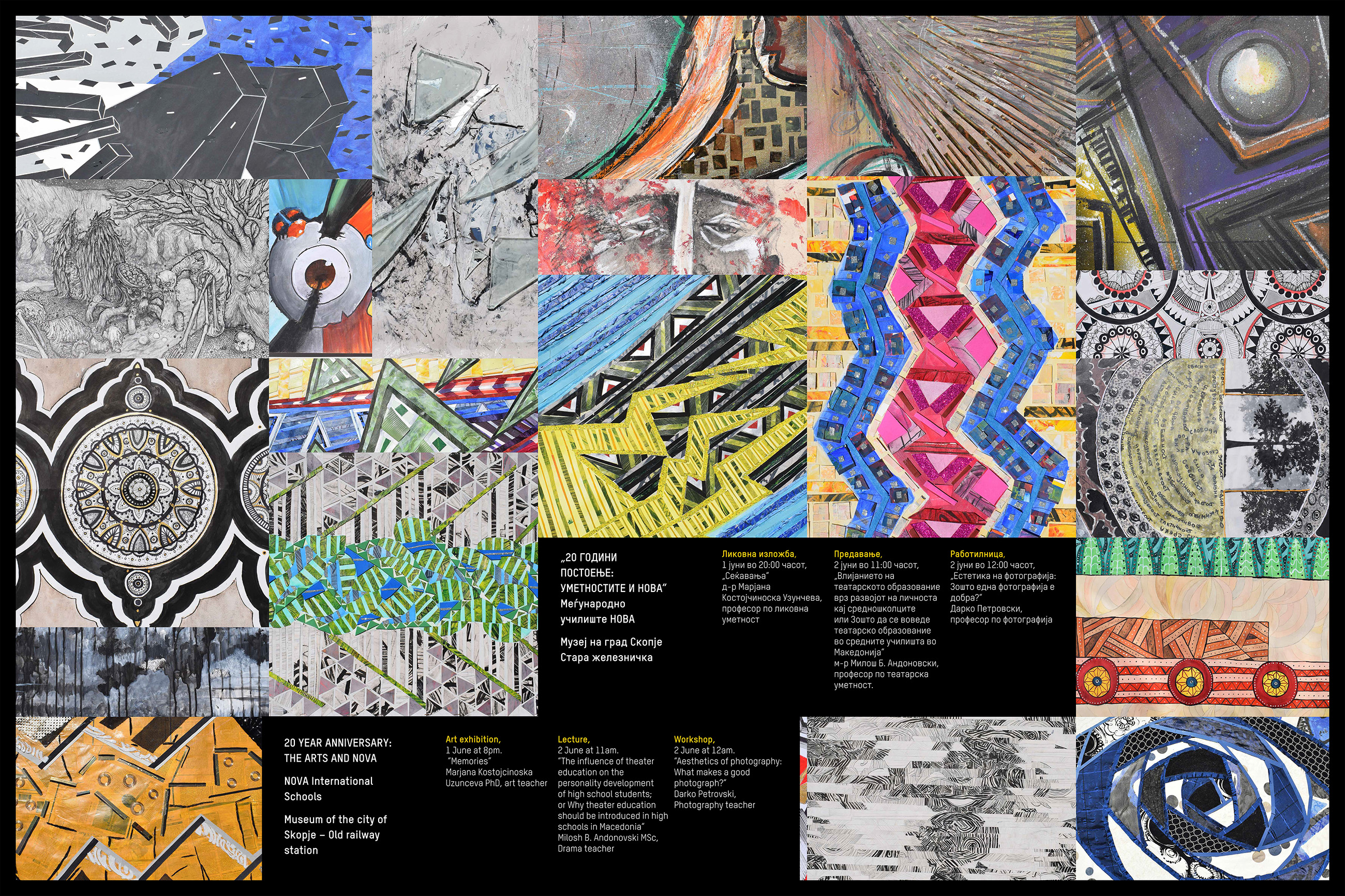 „Во изминатиов период, генерации на наши ученици покажаа извонредни достигнувања креирајќи своја уникатна уметност. Избраните дела претставуваат прозорец кон нивните лични, интимни ставови и согледувања, изразени преку културниот идентитет, современите политички и социјални ставови“, истакнуваат од училиштето „Нова“.