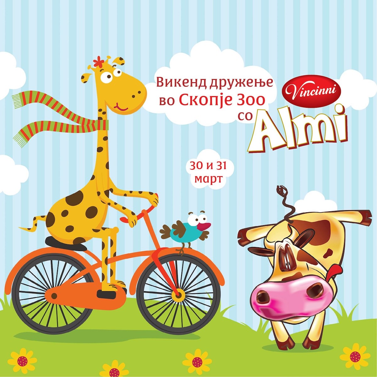 Секој добар гест треба да се прослави! А секоја сабота е ден за забава! Па затоа Винчини ве повикува во Зоолошката Градина со вашите најмали, каде тие ќе можат да се дружат со драгата маскота Алми и животинчињата, да се фотографираат и подароци и награди да збираат! И најважно од сè, да одат на гости во новиот дом на жирафата!