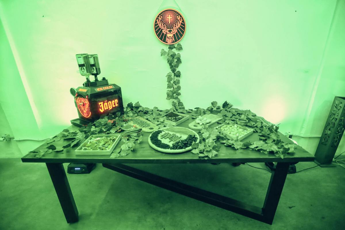 На самиот влез, луѓето добиваа пијалак за добредојде и мапа која ги водеше низ зоните на уникатни искуства. Во историската соба беа изложени слики од повеќето шишиња на Jägermeister уште од времето на основањето на брендот пред повеќе од 100 години, а меѓу нив се најде и новото редизајнирано шише.