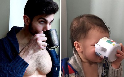 Мајка го исмева брат ѝ со тоа што го фотографира нејзиното бебе како ги имитира неговите пози