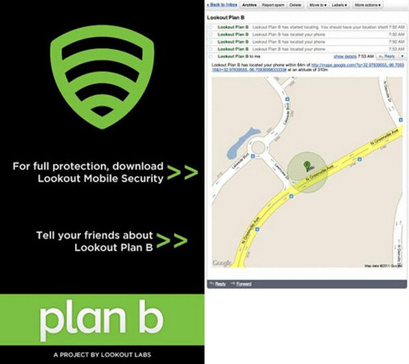 Plan B е многу едноставна апликација која може да ви помогне дури и да не сте ја инсталирале пред да го снема вашиот телефон. Треба само да ја инсталирате на кој било телефон и потоа од него да испратите порака со текст „Locate“ на вашиот број. Оттогаш таа ќе почне со GPS следење на исчезнатиот смартфон, ќе ви испраќа информации на вашата gmail сметка за тоа каде е и така лесно ќе го најдете.