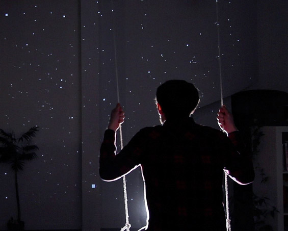 Сензорот „Kinect“ е поставен зад лулашката и преку видео проекторот креира галаксија од ѕвезди, кои го следат ритамот на лулањето. „Open Frameworks“ овозможува да го конфигурирате речиси секој начин на движење. И рендерирањето е многу едноставно. Се состои од квадратчиња создадени во „OpenGL“. За поубаво доживување пожелно е да се користат 3Д очила. Преку следното видео, погледнете како изгледа кога патувате низ ѕвездите, без да ја напуштите вашата дневна соба. 🙂