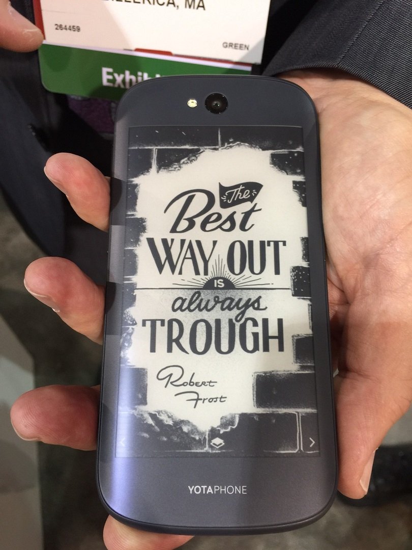 Читањето книги брзо ја исцрпува батеријата и затоа многумина мораат да купат и Киндл е-читач, чија батерија трае и до 30 часа. Јотафонот ги поседува особините и на смартфон и на Киндл во еден уред. На едната страна има ЛЦД екран на смартфон, ист како и кај сите други смартфони. Од другата страна има Е-Инк екран, погоден за читање книги затоа што не ги заморува очите како ЛЦД екранот и овозможува добра читливост на дневна светлина. Најдобро од сè, промената од ЛЦД на Е-Инк екран ја штеди батеријата. Ова е само првиот ваков уред кој се појавил на светскиот пазар и засега се продава по цена од околу 700 долари.