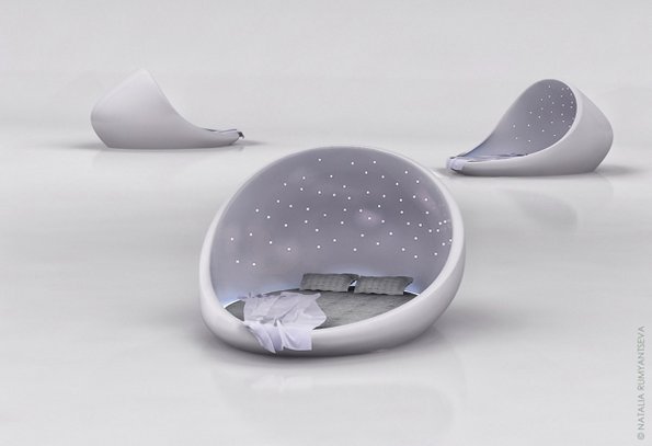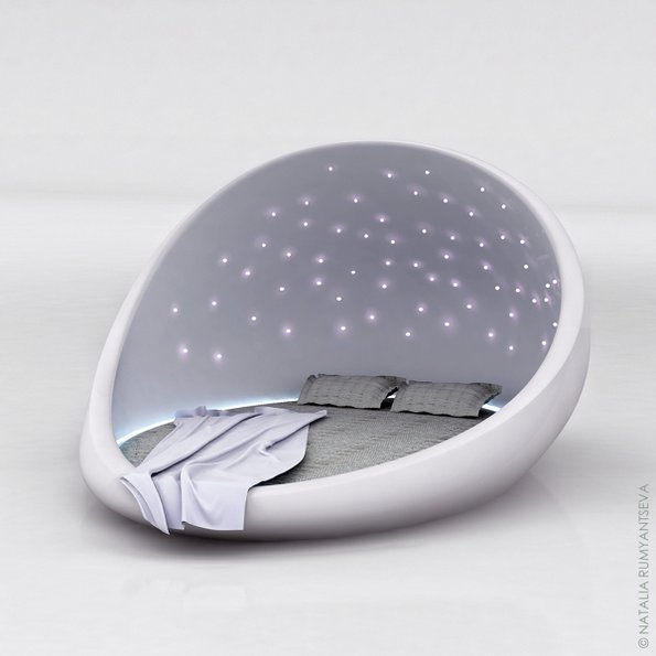 „Вселенски кревет“ е името на изумот на руската дизајнерка Наталија Румјанцева, кревет кој овозможува мирен сон под ѕвездено небо во затворена просторија. Каде и да го сместите, смирувачкиот сонувачки амбиент не ви бега.