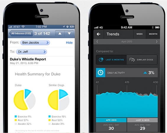 Овој многу интересен додаток за ремен за кучиња е продукт на компанијата „Whistle“ од Сан Франциско. Откако ќе го закачите на ременот на вашето куче, тој прави мониторинг на секаков вид податоци базирани на расата, тежината и староста на кучето. Направата собира информации за тоа колку кучето се движи, колку си игра и колку време поминува спиејќи во текот на денот. Дополнително следи и дали кучето покажува знаци на абнормално однесување, за сопствениците да можат да преземат нешто за општото здравје на миленикот.