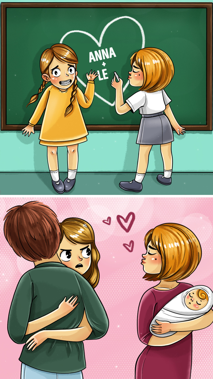 Вашите браќа и сестри се оние кајшто кои сакате да одите кога ви е потребна утеха, но и оние на кои сакате да врескате кога сте фрустрирани. Дури и откако ќе пораснете и ќе живеете одвоено од нив, сè уште ќе имате незаборавни заеднички моменти. Додека се потсетувате на спомените од минатото, не заборавајте дека некои од нив можат да бидат прилично смешни дури и ако тогаш ве повредиле. Погледнете дали и вие ќе се пронајдете во овие илустрации што ги опишуваат скапоцените заеднички моменти.