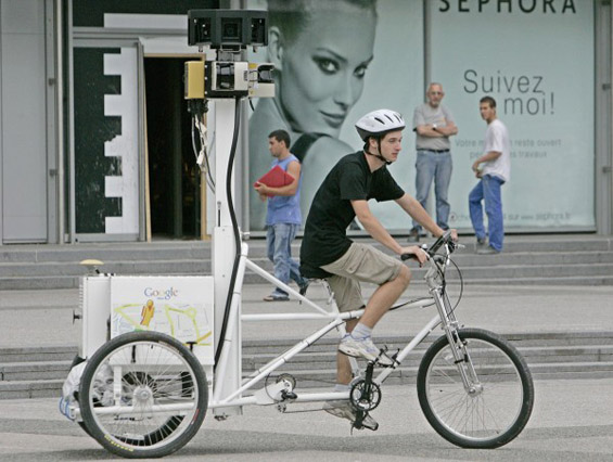 Го сакате велосипедизмот и Градот на Светлината? Па тогаш сигурно ќе ја обожавате и оваа работа. Имено, Гугл вработил двајца млади велосипедисти да возат ултра технолошки велосипеди на три тркала низ главниот град на Франција во летото, 2009. Фенси троциклите биле опремени со по 9 камери, GPS, компјутер и генератор за велосипедистите да направат илјадници дигитални фотографии за познатиот сервис Google Maps.