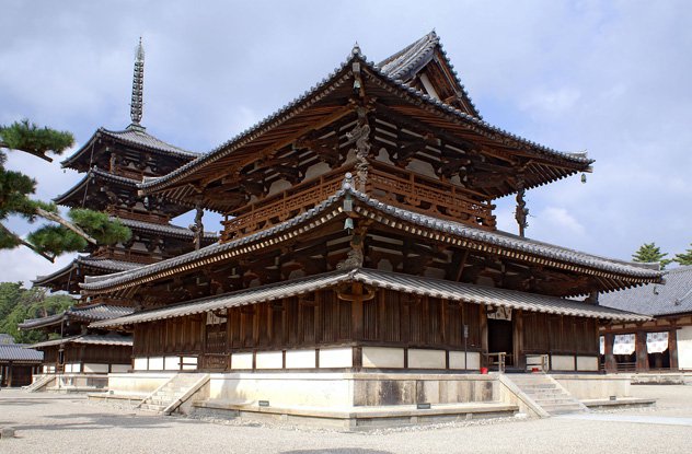 Најстарата дрвена градба која постои и денес е во будистичкиот храм Хорју Џи во Јапонија. Четири од зградите на храмот се во совршена состојба и датираат од јапонскиот период Асука. Изградбата започнала во 587-ма година по наредба на императорот Јомеи. По неговата смрт градбата ја завршил неговиот наследник во 607-ма година. Оригиналниот комплекс изгорел во 670-та година и бил реконструиран во периодот пред 710-тата. Неколку историчари се сомневаат за тоа дали пожарот го уништил оригиналниот комплекс. Ако не, тогаш градбата би била уште постара.