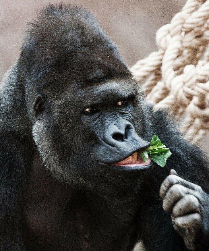 Горилите не јадат само меки банани, тие кршат и ореви и џвакаат тврди кори. За среќа на повеќето соседи на горилата, овие животни се вегетеријанци. Но, за да ја заштитат нивната група, тие не само што ги користат шепите, туку ги користат и нивните моќни вилици кои можат да гризнат скоро сè.