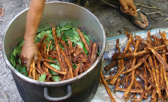 Повеќе од 3.000 години, амазонските племиња прават чај од лисјата на растението ајахуаска. Пијалакот содржи DMT (диметилтриптамин), што значи дека ефектот е како на екстазите и трае од два до пет часа, во зависност од испиеното количество.