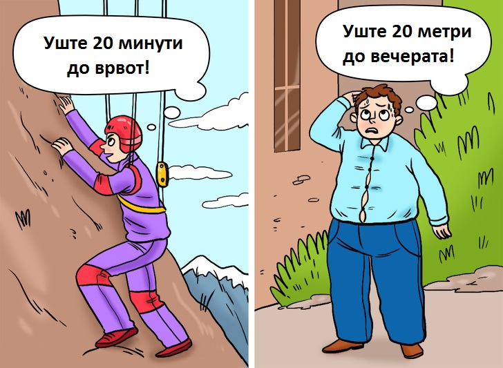 Ова може да ви помогне да изберете здрав начин на живот. Според статистичките податоци, планинарењето е многу побезбедно отколку прекумерната телесна тежина (и сите поврзани болести). Ако ги следите сите правила за безбедност, качување по планини е многу побезбедно од јадењето брза храна и водењето седечки начин на живот.