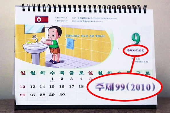 Во 1997 година, Северна Кореја ја прифатила новата хронологија и сега луѓето таму живеат во 106-та година. Нивната почетна точка била роденденот на Ким Ил Сунг во 1912 година. Сите испечатени календари имаат 2 верзии: Датуми за Северна Кореја и датуми за остатокот од светот. Ким Ил Сунг има многу благородни титули како што е „Вечниот претседател“, кои ги носат и неговиот син и внук, но никогаш не биле прогласени за претседатели.