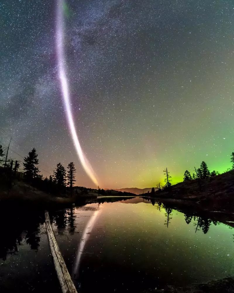 Оваа поларна светлина, или Аурора изгледа како панделка од светлина и е забележана во северната хемисфера.