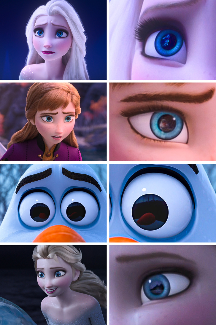 1. Во „Замрзнатото кралство 2“, во очите на ликовите можете да го видите одразот на она што тие го гледаат