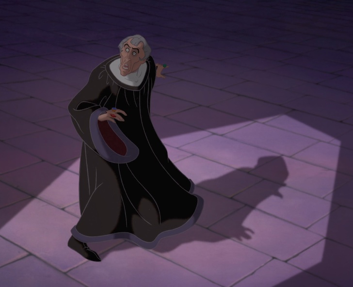 11. Во „Ѕвонарот на Богородичната црква во Париз“, кога Фроло се врти кон маскираните фигурите за време на песната „Hellfire“, светлината околу него е во форма на ковчег