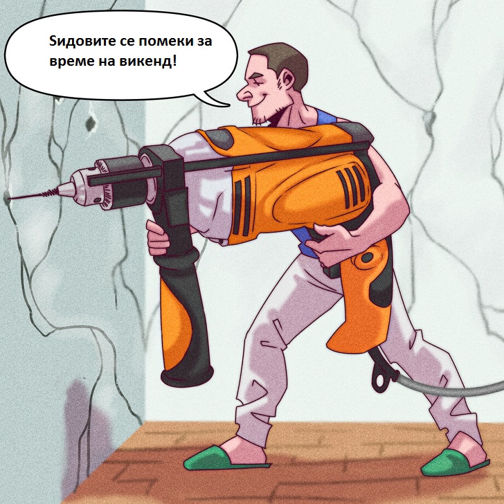 Поправките во неговиот стан никогаш не завршуваат и лицето кое му ја позајмило или му ја продало бормашина на овој сосед ќе биде редовно проколнувано. Другите соседи се секогаш навистина заинтересирани да дознаат зошто овој сосед треба да избуши нешто толку итно за време на викендот наутро. Дупчењето, соседот го прави на 2 начина: безмилосно и нежно. Во првиот случај тој буши постојано со часови, во вториот, тој повремено прави паузи, изгледа за да не ги вознемири премногу соседите.