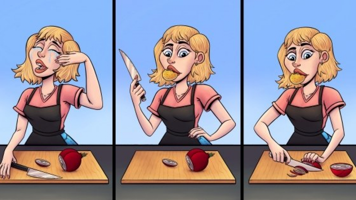 Ова можеби изгледа смешно, но е интересно! Ставете парче бајат леб во устата, оставајќи мал дел од лебот надвор од усните. Причините поради која течат солзи при сечкањето кромид се сулфатите што се ослободуваат при негово дробење. Лебот го апсорбира овој гас и создава свеж воздух.