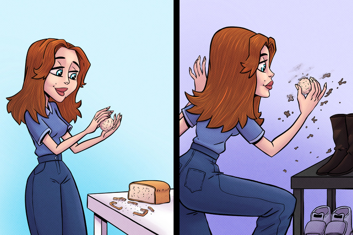 Сунѓерестата текстура на лебот е, исто така, неверојатна за чистење дамки. Направете цврста топка од леб без кора и користете ја за отстранување на дамки во кујната или бањата. Се употребува како гума за бришење и нема потреба да се грижите за хемикалиите во производите за чистење!