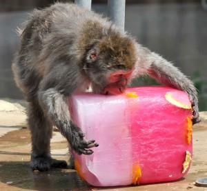 Малку преамбициозен јапoнски макаки во зоолошкиот парк Сендаи Јагијама во Мијаги, Јапонија