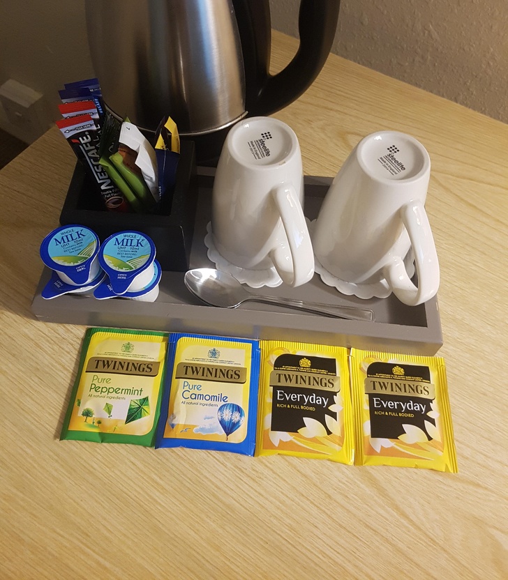 Речиси во секоја хотелска соба има ќесички чај и кафе што можете да ги земете бесплатно, а подоцна можете да уживате во нив дома, сеќавајќи се на вашата убава хотелска услуга.