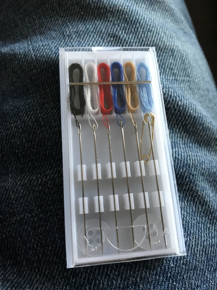Комплетите за шиење што ги има во хотелите може да ве спасат во многу ситуации. Комплетите обично се во големина совршена за носење во вашиот багаж. Ако не сте сигурни, секогаш можете да го прашате персоналот на хотелот дали ви е дозволено да го земете, а најчесто ним не им пречи тоа.