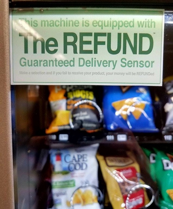 11. Вендинг машина којашто ви ги враќа парите, доколку не ви го испорачала тоа што сте го купиле