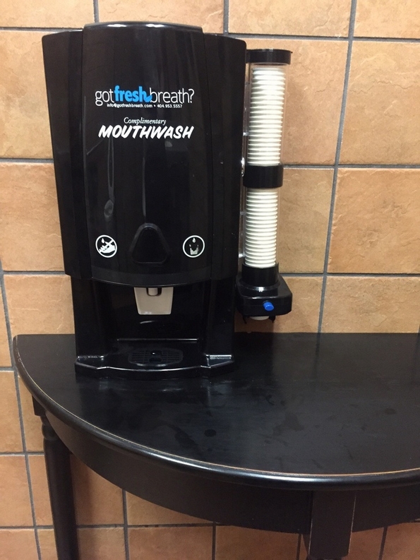 9. Ладилник на средство за плакнење уста во чекална, којшто ви овозможува бесплатно да си ја исплакнете устата после јадење