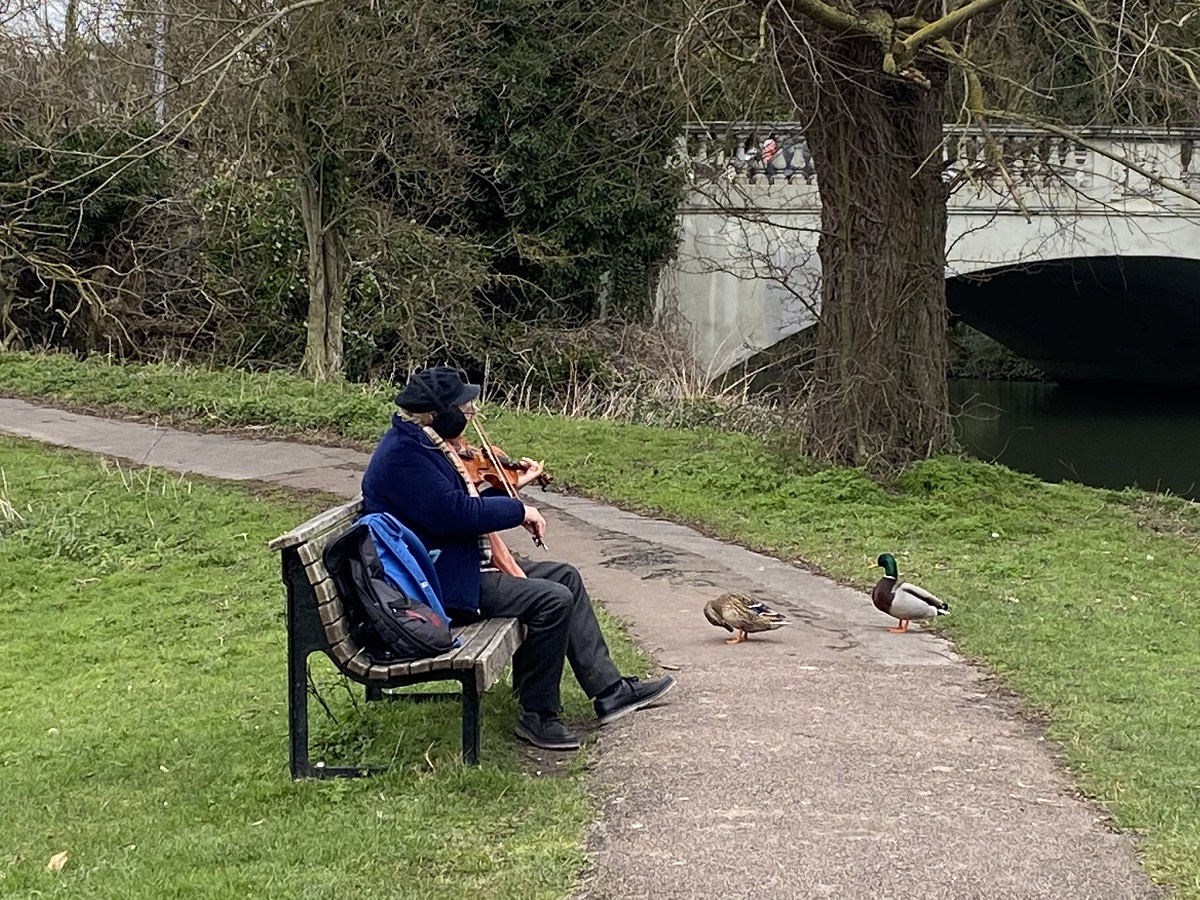„Бев на прошетка и видов еден човек свиреше на виолина пред публика составена од 2 патки. Се сомневам дека некогаш ќе видам нешто толку чисто и убаво повторно во мојот живот.“