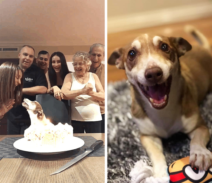 3. Едно семејство организирало забава по повод 13-тиот роденден на нивното куче. Погледнете само колку е среќно тоа за настанот и за неговата нова играчка: