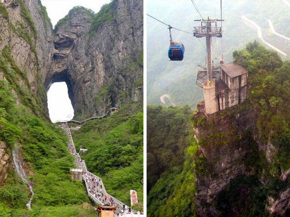 Во Кина има планина наречена Тианмен што значи „Порта до рајот“, а името е оправдано – куполата што се формирала по земјотрес во 263-тата година навистина изгледа така. Се верува дека оние коишто ќе ги искачат сите 999 скалила до „Портата до рајот“ ќе можат да го допрат небото и да добијат вечна среќа. Се разбира, не е едноставно да стигнете до овде. Скалите се наоѓаат на врвот на планината и потребно е да се искачите со железница, а потоа да поминете 11 километри со автомобил на автопат наречен „99 свртувања“.