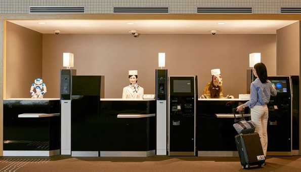 Хотелот со 5 ѕвездички Хен-на, во префектурата Нагасаки, решил да направи нешто поинакво за своите клиенти. Така, јапонските гости, наместо на рецепција да се поздравени од човечко суштество, нив ги пречекува хуманоиден робот. Од друга страна, гостите коишто разбираат само Англиски јазик, се пречекувани од страна на роботски диносаурус.