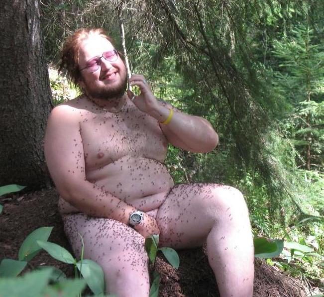 Човек кој ужива додека е покриен со огнени мравки