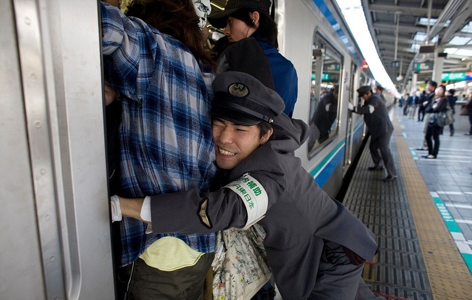Јапонските подземни железници имаат премногу патници за време на шпицот, па затоа постојат посебни работници (ошија) кои ги туркаат луѓето во возовите. Првите ошија работници биле студенти кои работеле со половина работно време.