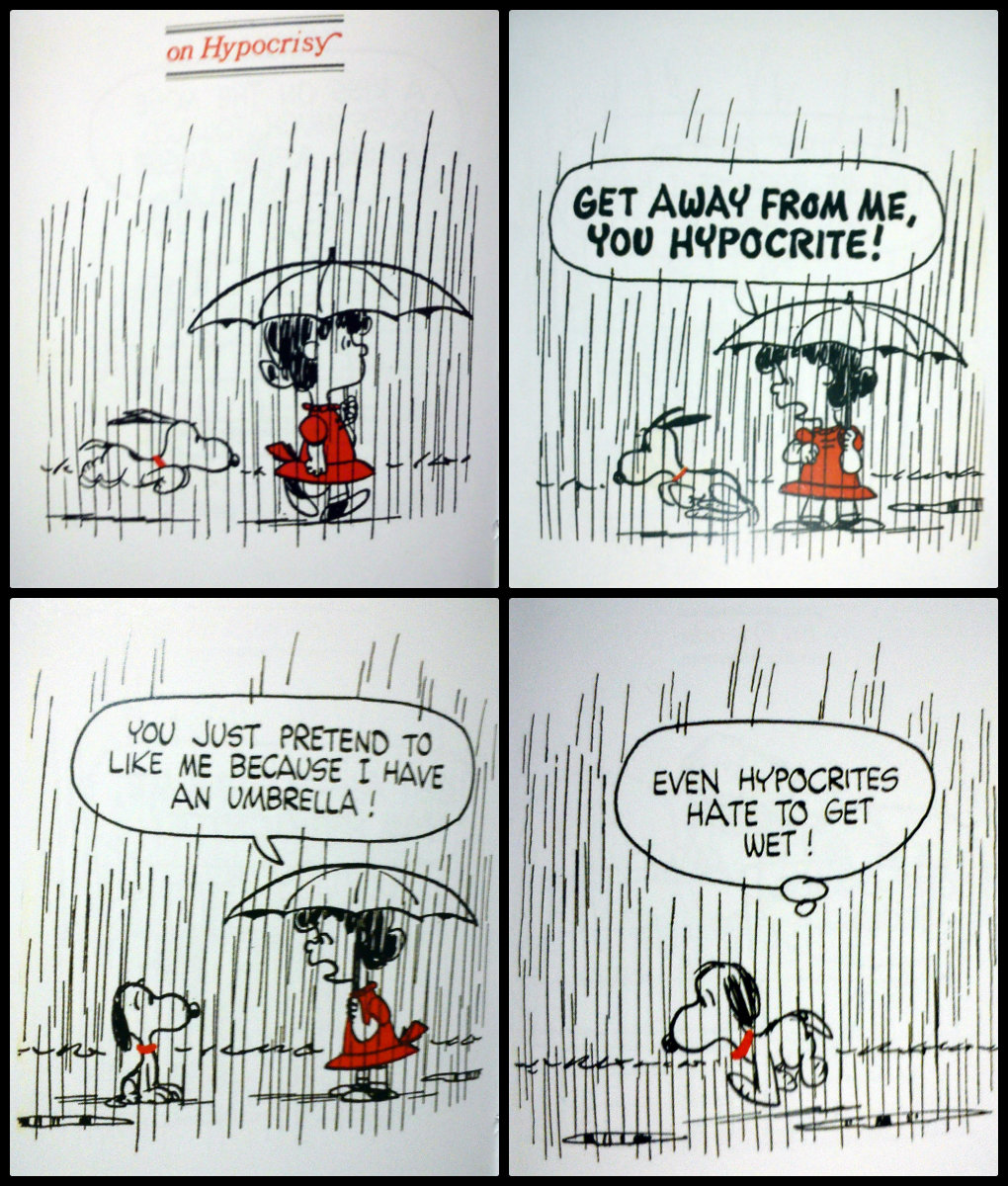 „За лицемерието. Бегај од мене, лицемеру еден! Се преправаш дека ти се допаѓам само затоа што имам чадор! Дури и лицемерите накиснуваат.“