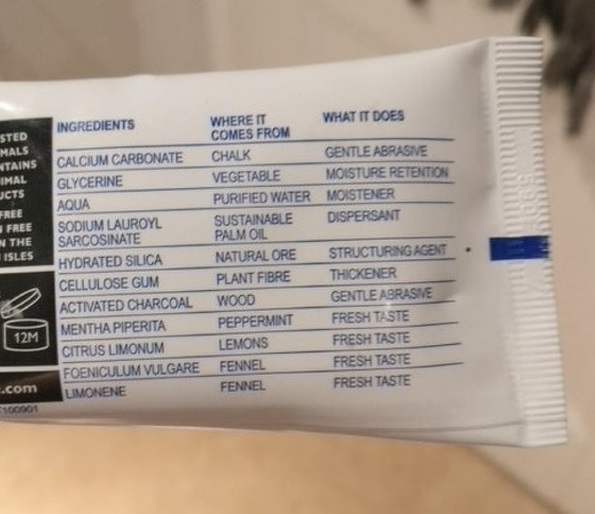 8. Паста за заби што ги прикажува нејзините состојки и нивната намена