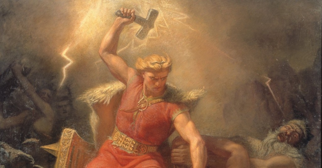 Чеканот на Тор можел да предизвика гром, а можеле да го кренат само оние кои се „достојни“ и секогаш се враќал како бумеранг кај оној што го фрлал. Тор го добил чеканот од Локи, а во замена дозволил Локи да ѝ ја исече косата на неговата жена, Сиф. Чеканот бил направен од две џуџиња, Брок и Синдри, кога Локи им рекол дека не можат да направат нешто поубаво од она што веќе го имале направено. Кога Локи го изгубил облогот, кој бил неговата глава, тој истакнал дека го ветил својот врат, а не главата, па затоа не можеле да му ја пресечат. Наместо тоа, џуџињата му ја зашиле устата.
