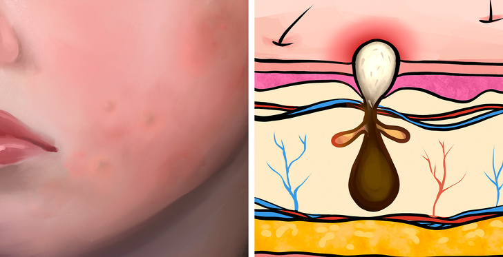 Причини: Нодулите настануваат кога затнатите пори ги оштетуваат клетките и ткивата длабоко под површината на кожата.
