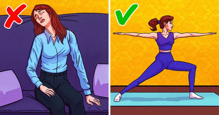 Можеби ќе помислите дека кога ќе се вратите уморни од работа, лежењето на каучот може да ви помогне да заштедите енергија и да се чувствувате малку поенергично. Но, важно е да вежбате барем неколку пати неделно за да се чувствувате помалку уморни цело време. Едно истражување од 2008 година покажа дека луѓето кои вежбале по 20 минути со слаб интензитет 3 пати неделно, имале поголемо ниво на енергија и пониско ниво на замор.