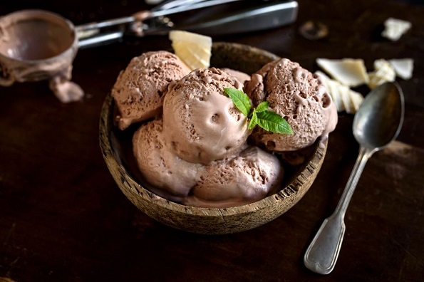 Овој популарен десерт може да содржи кофеин. Сладоледот со чоколадо и кафе, може да содржи кофеин затоа што е направен од состојки што содржат кофеин. Некои производители на сладолед наведуваат дека нивото на кофеин во сладоледот (порција 2/3 чаша) или парчињата чоколадо во сладоледот содржат околу 35 милиграми кофеин.