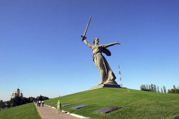 Статуата на маж кој држи меч е направена во сеќавање на битката во Сталинград. Направена е од познатиот руски вајар Евгениј Вучетиќ и архитектот Николај Никитин. Во 1967-ма година била прогласена за највисока статуа во светот.