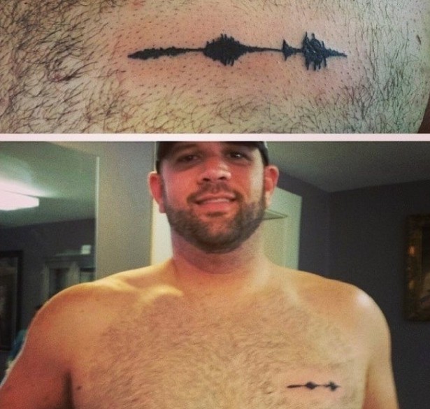 Понекогаш се случува новороденчињата ненадејно да починат. Кога ова се случува родителите бараат разни начини за да се справат со тагата. Овој татко го почувствувал тоа и решил да го истетовира звучниот бран од смеата на неговото мало момче кое починало. Навистина неверојатен начин да го запомни.