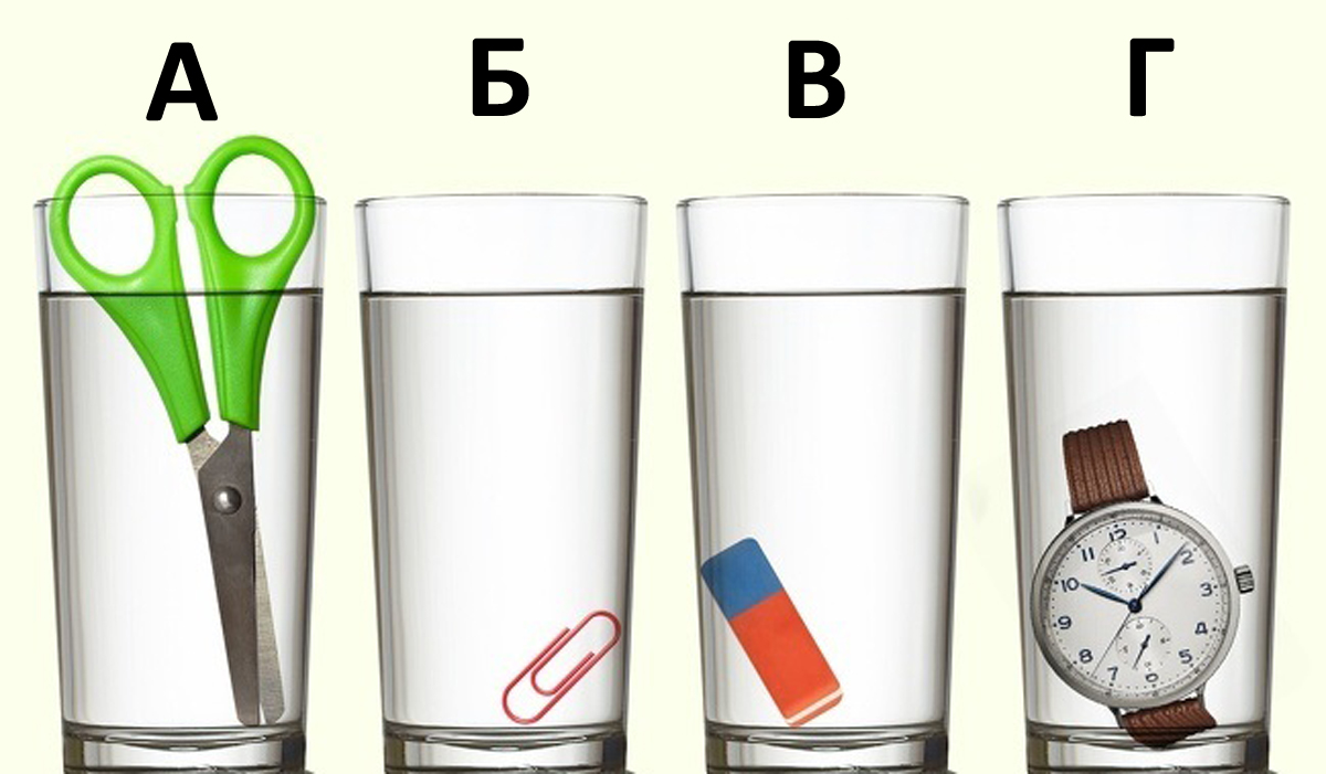 Во споредба со другите предмети, спојувалката зазема најмал простор. Ако ги извадите сите предмети од чашите, ќе видите дека во чашата под Б има најмногу вода.