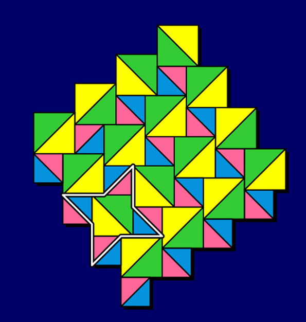 6. Помеѓу квадратите и триаголниците има скриено совршена ѕвезда со 4 крака како онаа на врвот на сликата. Можете ли да ја најдете?