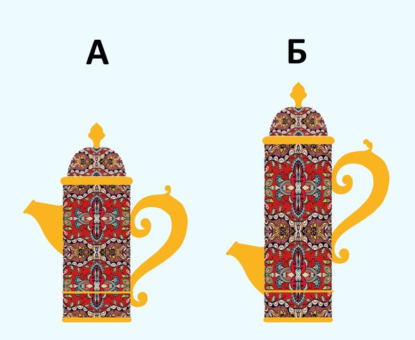 Чајникот под Б може да собере 16 шолји чај, бидејќи неговиот отвор се наоѓа на средина на чајникот под А. Остатокот од водата ќе почне да претекува.