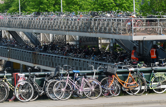Во градот има околу 400 километри обележани велосипедски патеки. Најкарактеристичен велосипед за градот е традиционалниот „Omafiets“, но можат да се забележат секаков тип велосипеди. Исто така, голем број туристи кои го посетуваат градот, турите ги прават со велосипед. За разгледување на градот со автомобил треба да знаете дека паркинг местата се многу скапи, голем број улици се затворени, а оние кои не се, се едносмерни.