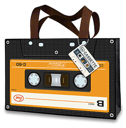 Чантата во форма на аудио касета е одличен избор за оние кои преферираат ретро стил.