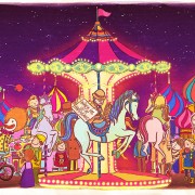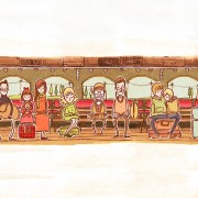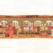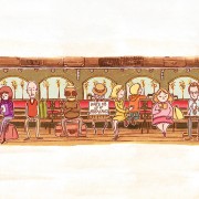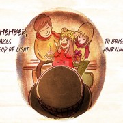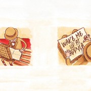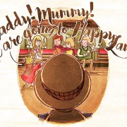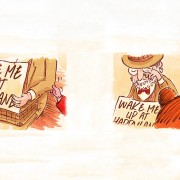 „Разбудете ме кога ќе стигнеме во Среќната Земја“ е кратка приказна раскажана преку слики за маж кој патува низ светот во потрага по Среќна Земја. Исплашен дека би можел да ја испушти, со себе носи знак со кој ги потсетува другите да го разбудат кога ќе пристигнат таму. Но, никој не го разбудил и тој продолжил да бара наоколу.