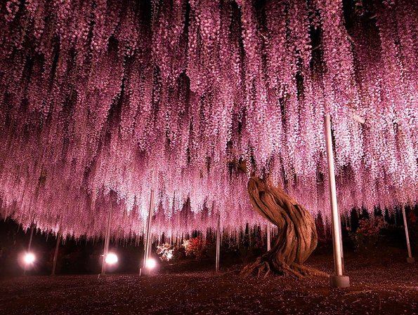 Можеби не е најголемото дрво во светот, но се протега на неверојатни 1.990 метри квадратни во цветниот парк Ашикага во Јапонија, и постои уште од 1870 година. Иако наизглед како дрво, всушност вистериите спаѓаат во вид лози, а бидејќи лозите на вистеријата може да бидат доста тешки, ова растение се потпира на метални шипки кои го штитат од уништување. Ова им дозволува на посетителите да одат под лозите на дрвото и да уживаат во волшебната глетка на розови и виолетови нијанси.